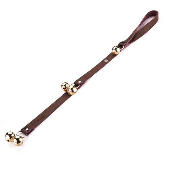 CATHYLIFE Leather Dog Doorbells for Door Knob/Potty Training/Go Outside, Length Adjustment Copper Dog Bell, Housetraining Hanging Bell, Dark Brown Leather Golden Bells