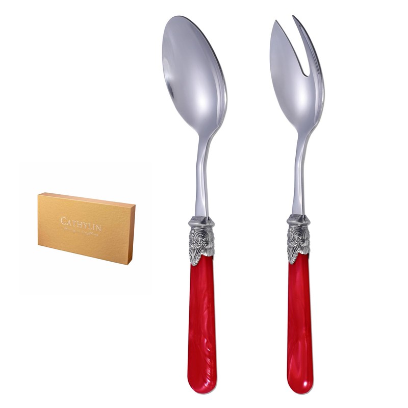 CATHYLIN 2-piece Salad Servers Stainless Steel Salad Serving Set Salad Fork and Spoon (Red)