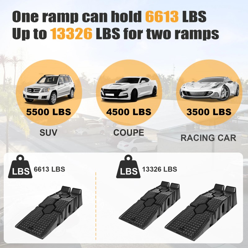Catinbow Set of 2 Car Ramps 6Ton Heavy Duty 3+3Ton Jack Lift Lfiting Plastic Ramp