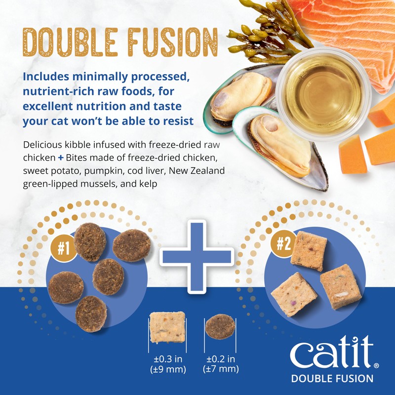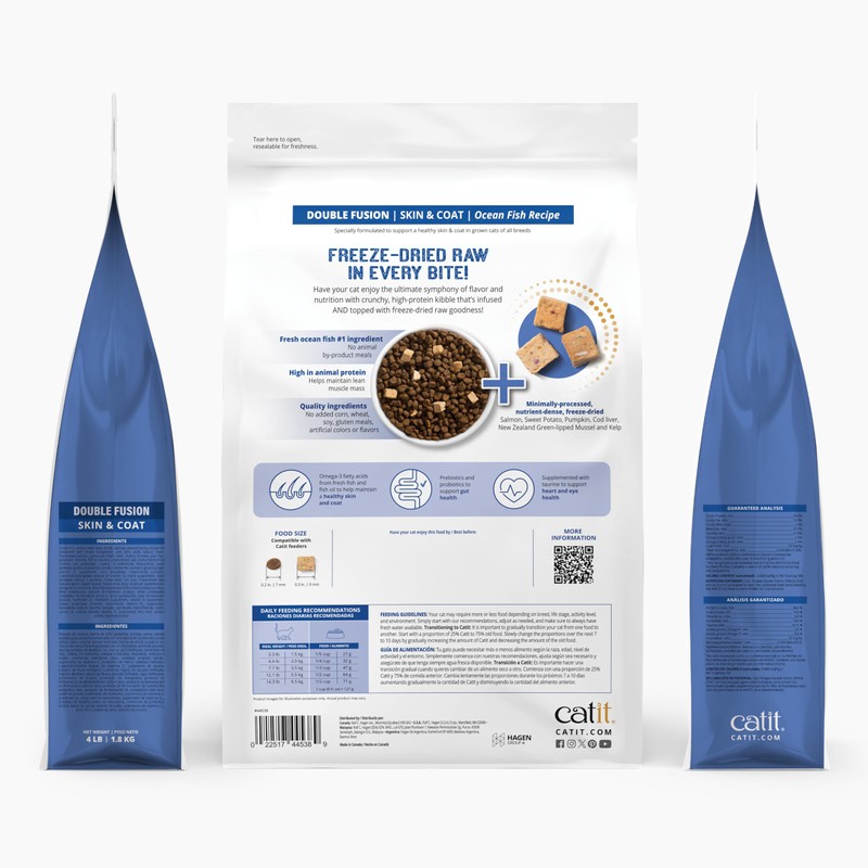 Catit Recipes Double Fusion Skin & Coat Cat Food – Ocean Fish Recipe, High-Protein, Freeze-Dried Raw Toppings, Omega-Rich for Healthy Skin & Fur, No by-Products, Minimally Processed, 4 lb