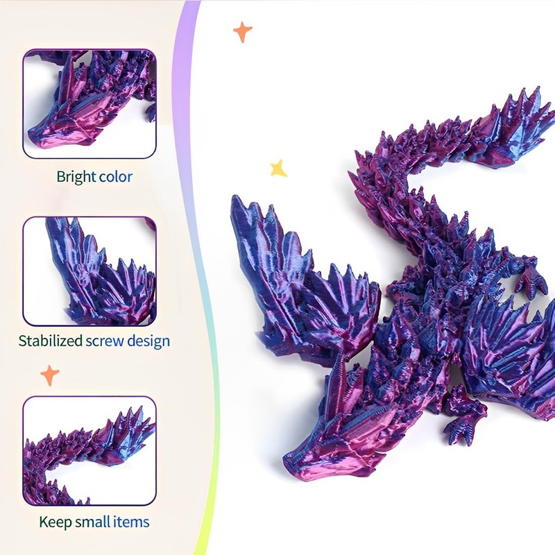 - Iridescent Appearance Adopting advanced coloring process, it presents brilliant and eye-catching colors, 3D printing fine texture, each scale is lifelike, with strong visual impression, which makes it attractive to play with or use as decoration.
