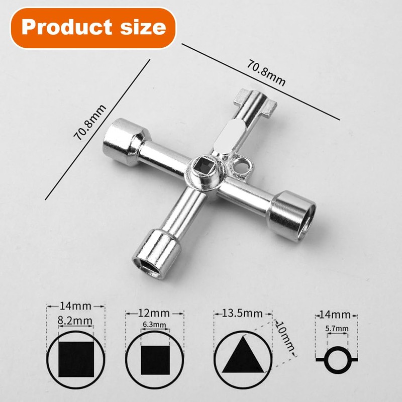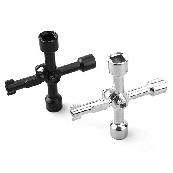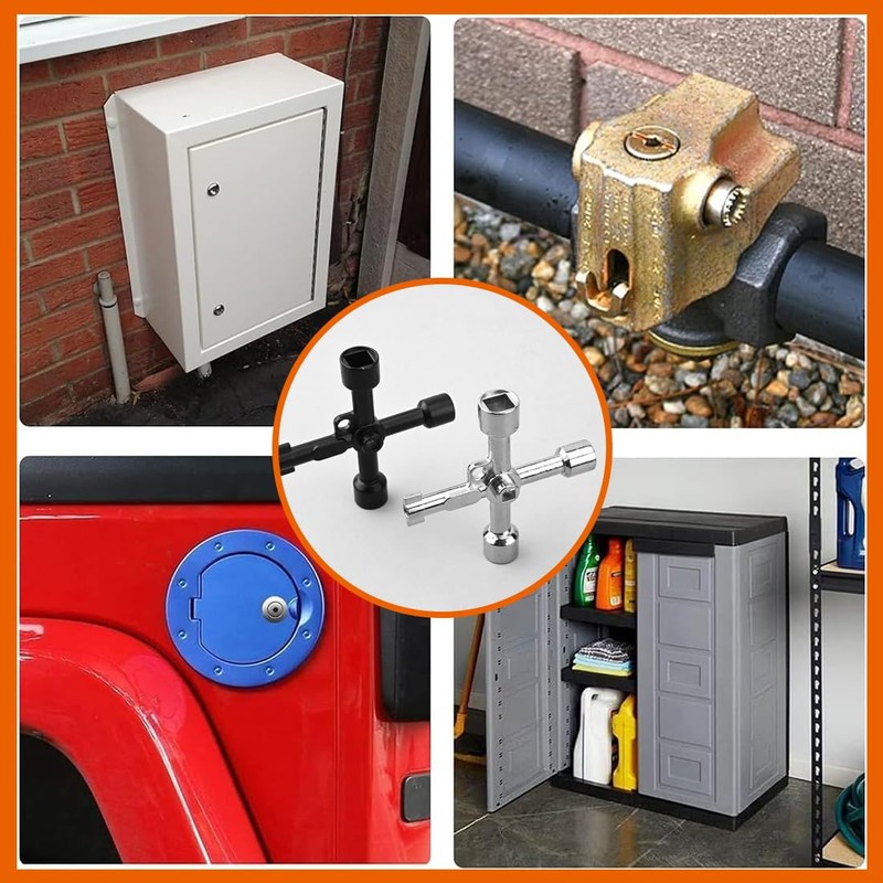 CATOR Pack of 2 4-Way Multifunctional Utilities Keys for Electric Water Gas Meter Box Cabinet Open Keys, Multifunctional Control Cabinet Key, Silver & Black