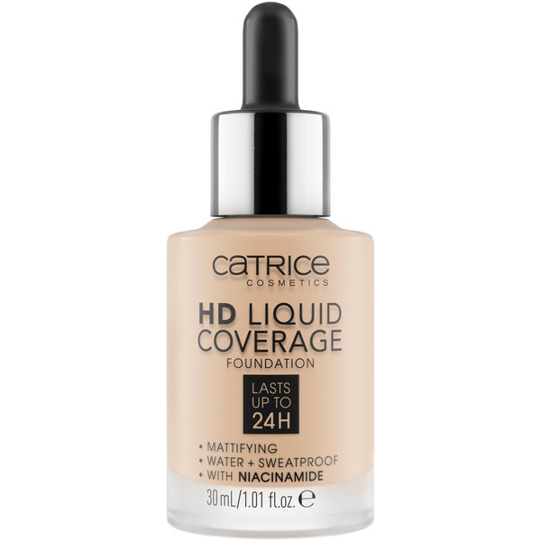 Catrice | HD Liquid Coverage Foundation | 24H Wear, Matte Finish, High Coverage, Waterproof Formula with Niacinamide | Vegan & Cruelty Free (010 | Light Beige)