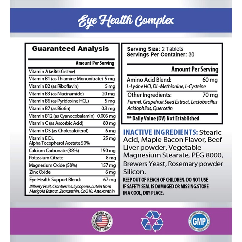 • CAT EYE SUPPLEMENT: Eye health in cats has become the talk of the town. There’s more and more discussion about eye disease and vision problems in cats, including macular degeneration and more. Our supplement is packed with nutrients and vitamins to benefit your cats health.