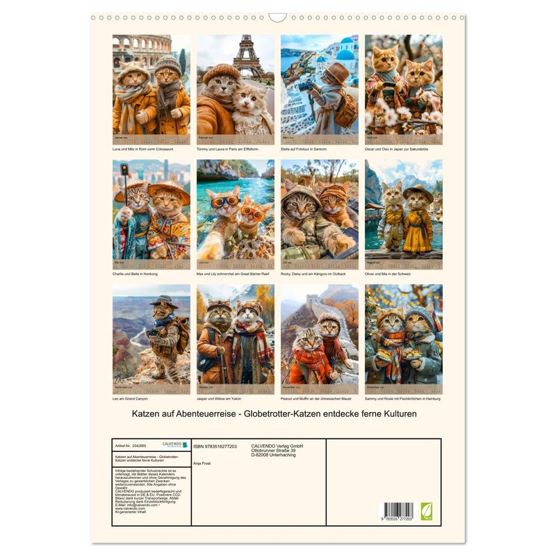 Cats on Adventure Journey - Globetrotter Cats Discover Distant Cultures (Wall Calendar 2026 DIN A2 High), CALVENDO Monthly Calendar