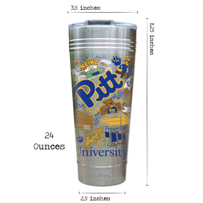 - UNIVERSITY OF PITTSBURGH thermal tumbler is the perfect way to celebrate your college pride. Featuring University of Pittsburgh's iconography to capture the essence of the college. Landmarks and details only insiders know are featured because each college is much more than a logo—it's an experience! An ideal Pitt gift for Panthers fans!