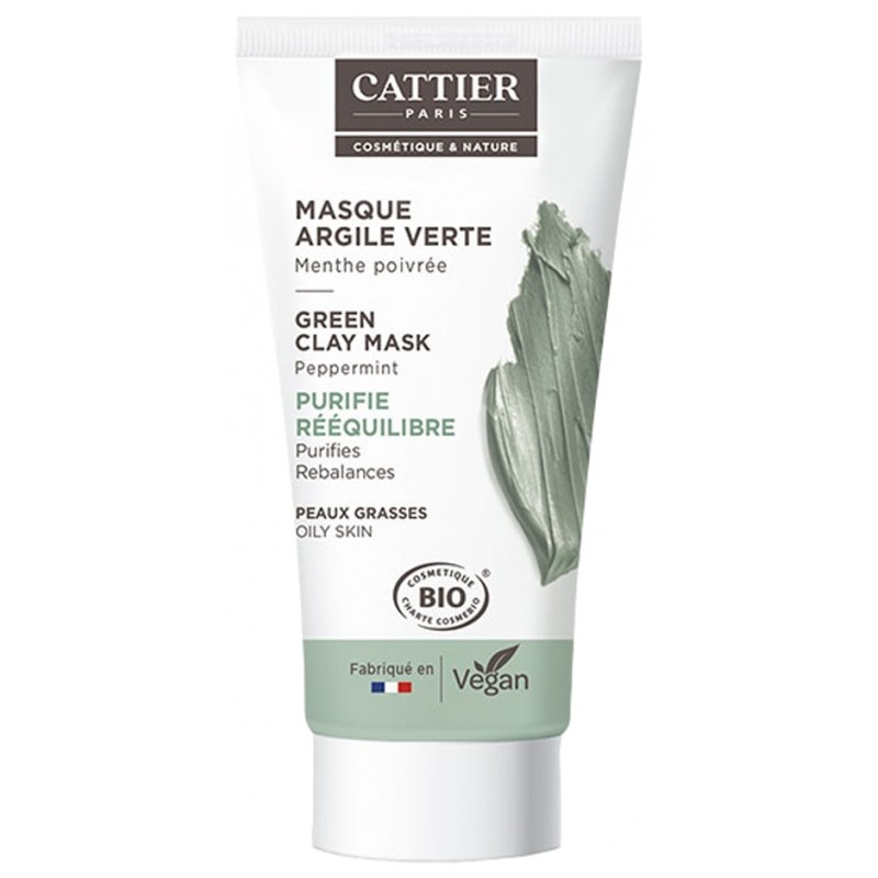 Cattier Green Clay Mask Oily Skin Organic 30ml is a gentle purifying and remineralizing care of combination to oily skin.