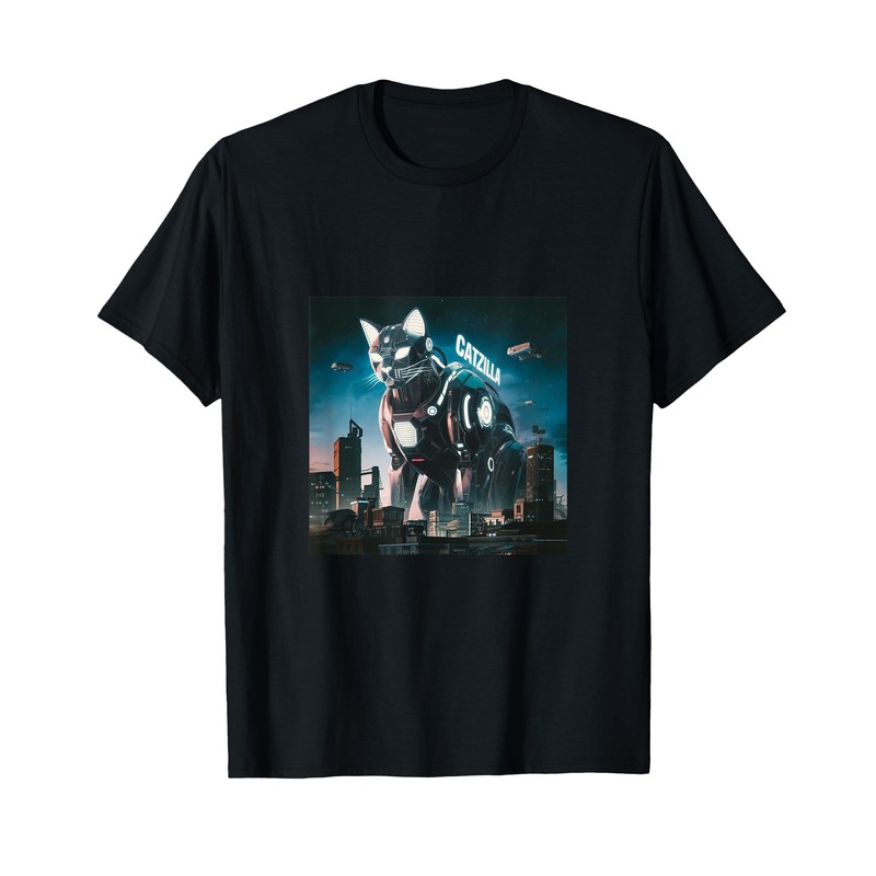 - Step into the world of cyberpunk creativity with this innovative "Catzilla" artwork, blending feline power with robotic ingenuity. Perfect for special occasions like Halloween, birthdays, or everyday wear.