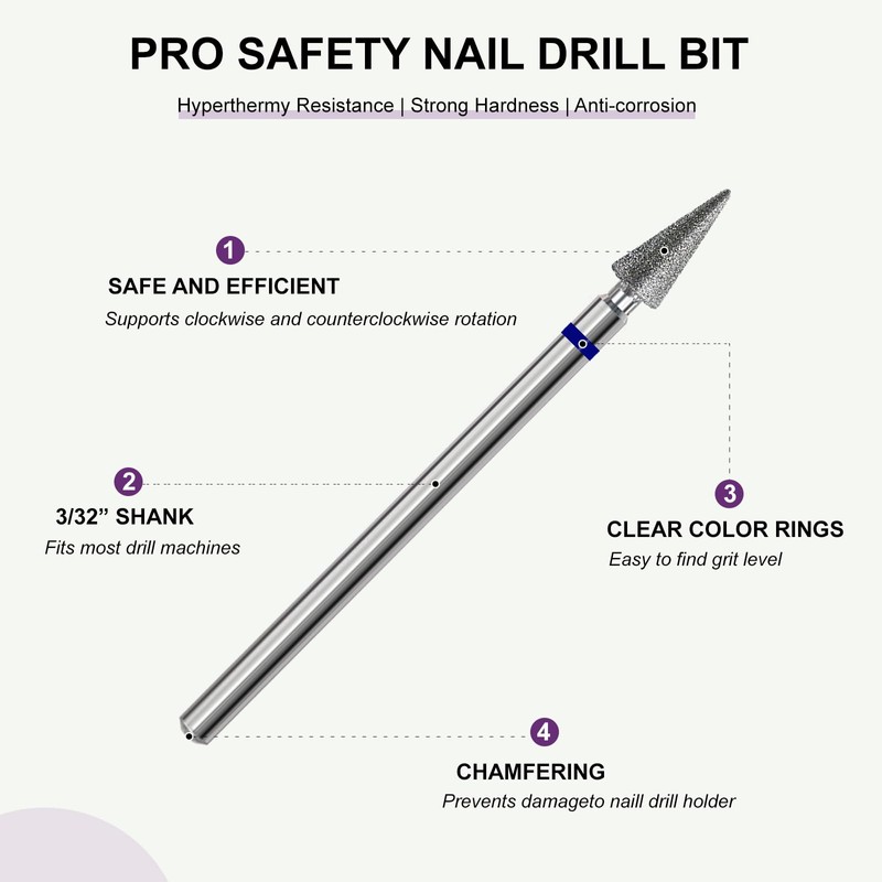 - Compatible Nail Drill Bits – Standard 3/32" shank fits most professional nail drills for stable and smooth operation