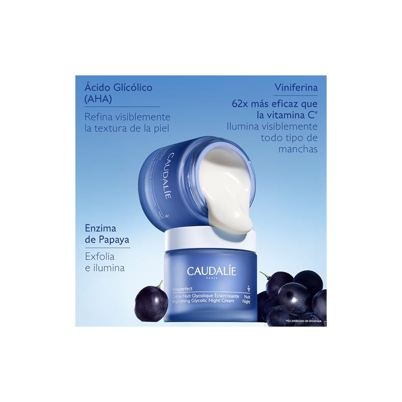- LA CREMA ILUMINADORA DE NOCHE: Vinoperfect Crema Iluminadora Glicólica de Noche reduce visiblemente la apariencia de manchas oscuras y actúa como un peeling suave durante la noche para revelar una piel más lisa y uniforme. Trata manchas por el sol, melasma y marcas de acné.