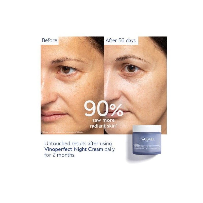 Caudalie Vinoperfect Dark Spot Correcting Glycolic Night Cream corrects dark spots and provides gentle exfoliation overnight, revealing a fresher and more radiant complexion by morning.