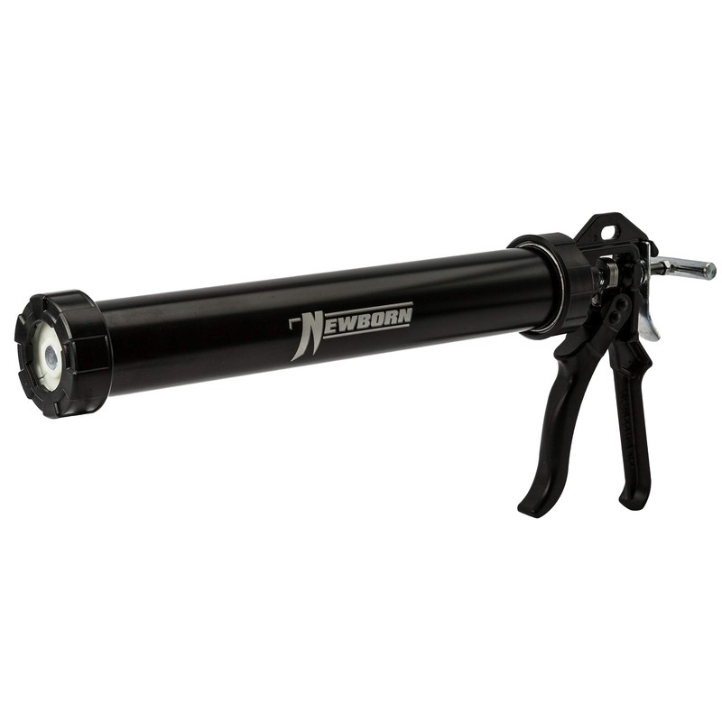 Caulk Gun, Bulk/Sausage Packs, Smooth Rod, Black, Size 24 oz., 18:1 Thrust Ratio, For Use With Sausage, Bulk Material, Aluminum Construction, Includes (1) Multi-Chemical Resistant Twin Hytrel Cup, (3) Plastic Nozzles