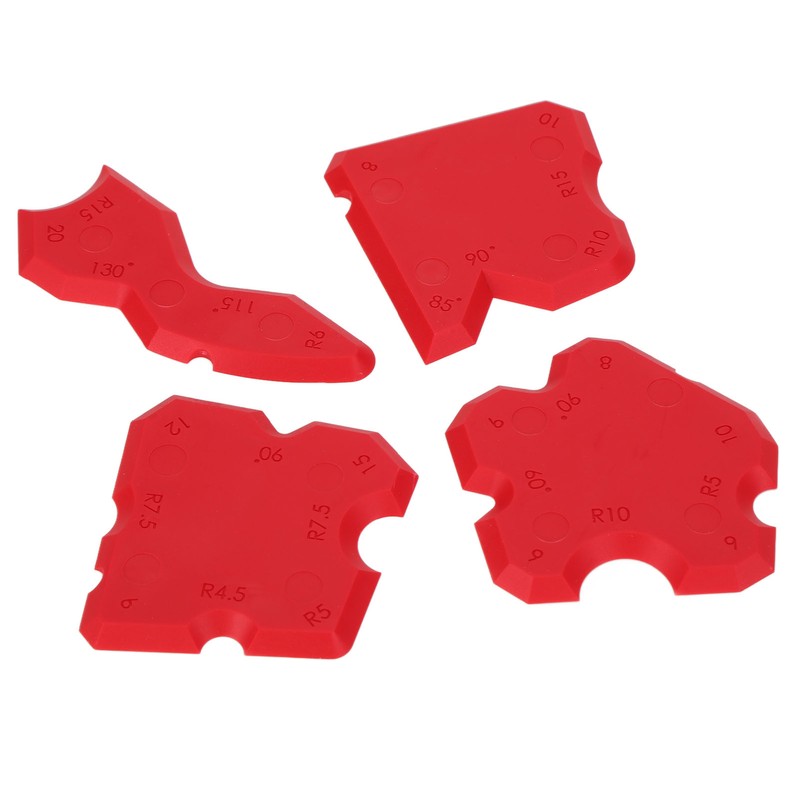 1、[ABS Material] The Grout scraper is made of high quality sturdy ABS material, which is wear resistant and durable, and can be used for a long time. 2、[Reusability] The caulking tool can be used repeatedly and is suitable for any edges, corners and seams; it is easy to arrange, wipe it clean with a damp cloth, and it is convenient for the the following application. 3、[4 Different Shapes] This product includes four squeegee blades of different shapes, two tetragonum squeegee blades, a round squeegee blade and a heterosexual squeegee blade. 4、[Scope of Application] The tetragonum squeegee is suitable for internal and external corners, and can be shaped into small round corners of 6mm, 12mm.15mm oblique flat angles. The round squeegee is suitable for internal angle, external angle, 8mm9mm, 10mm, oblique flat angle. 5、[Heterosexual Squeegee] The tetragonum squeegee and the heterosexual squeegee are suitable for internal and external corners, and can be shaped into large round corners, right angles, 8mm, 10mm oblique flat angles.