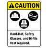 Caution Hard Hat Hi Vis Vest And Safety Glasses Required Sign, 18x24 Inches, 55 mil thick HDPS (high density polystyrene), Made in USA by My Sign Center
