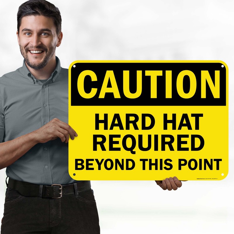 Caution Hard Hat Required Beyond This Point Osha Sign, 18x24 Inches, 55 mil thick HDPS (high density polystyrene), Made in USA by My Sign Center