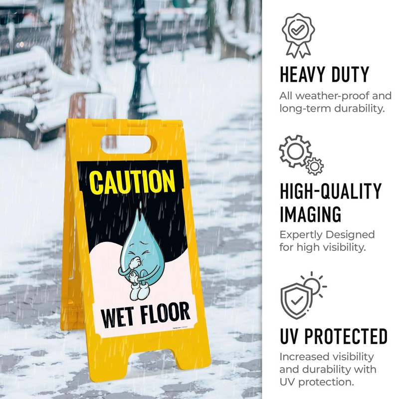 Caution Wet Floor Water Sidewalk Sign Kit, 10x16 Inches, with A Frame Stand, Made in USA
