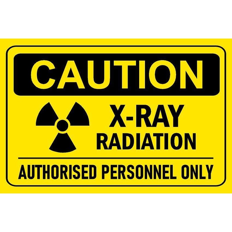 - Caution, X-ray radiation, authorised personnel only, safety sign.
