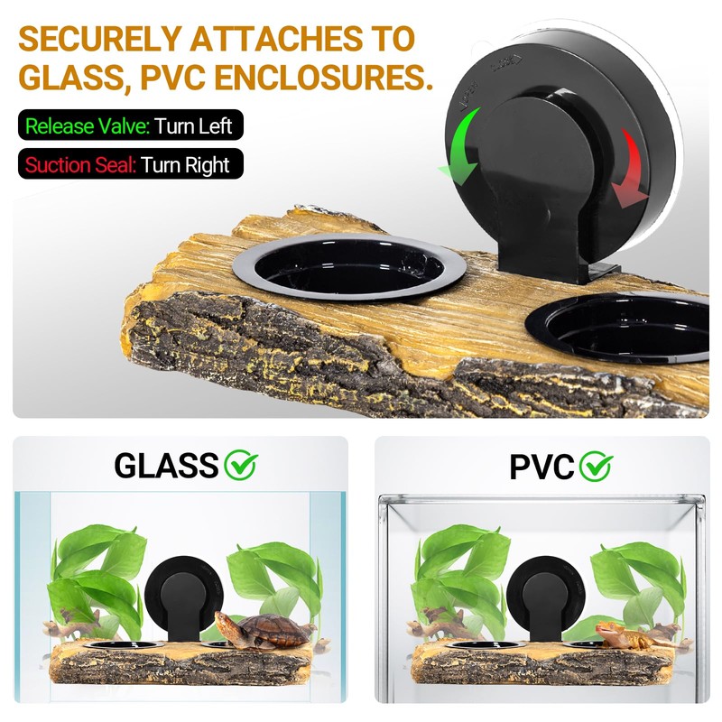 - ULTRA-STRONG SUCTION MOUNT: 360° rotating suction cups attach firmly to glass/acrylic/wood (no drilling), preventing falls even in humid terrariums. Solves "falling ledge" pain points