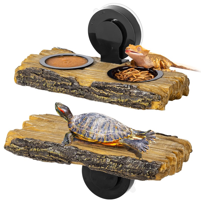 - 2-IN-1 FUNCTIONALITY: Perfect as a feeding ledge or basking platform for crested geckos, day geckos, tree frogs, turtles – Save tank space & cost with dual-purpose design for reptiles and aquatic pets