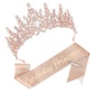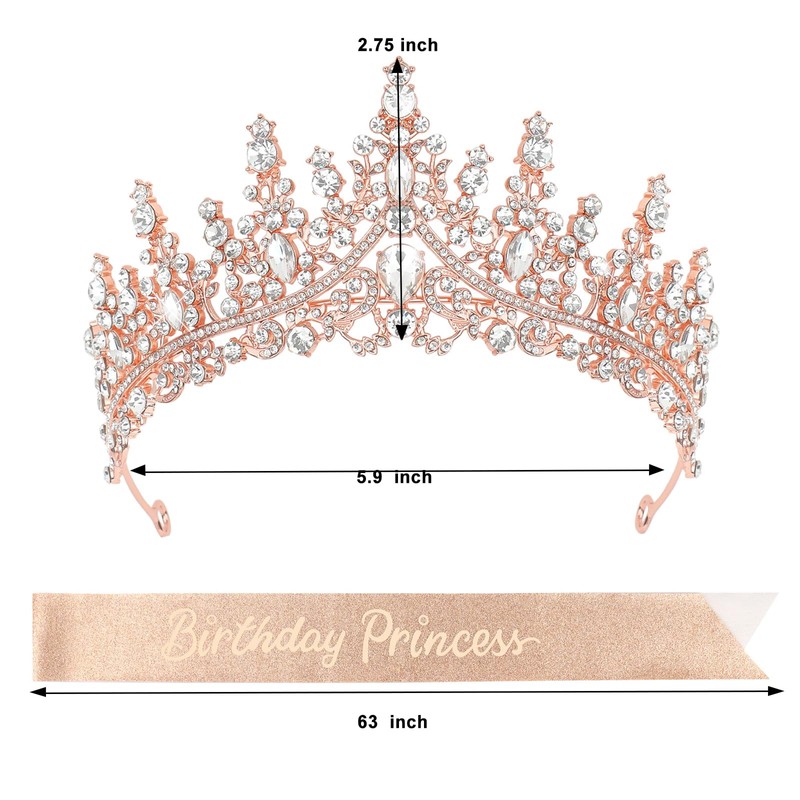 - Rose Gold Rhinestone Tiara + Glitter "Birthday Princess" Sash Gifts Set