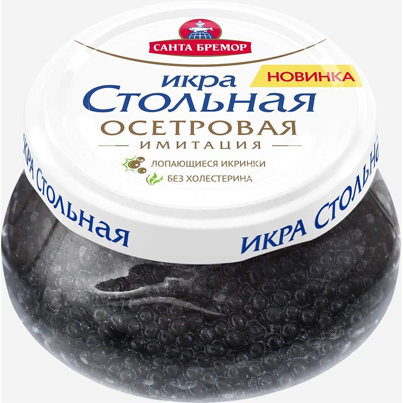 Imitated sturgeon Caviar contains valuable fish and seaweed. Eggs have a natural appearance, nice burst in the mouth and have excellent taste. High- quality imitated caviar practically does not differ in consistency and taste from the natural. However, a more pleasant price makes such a delicacy affordable for everyone. The main advantage of synthetic caviar in comparison with natural caviar is low calorie content. Imitated caviar is rich in fatty acids and Omega-3. These components contribute to the preservation of youth.