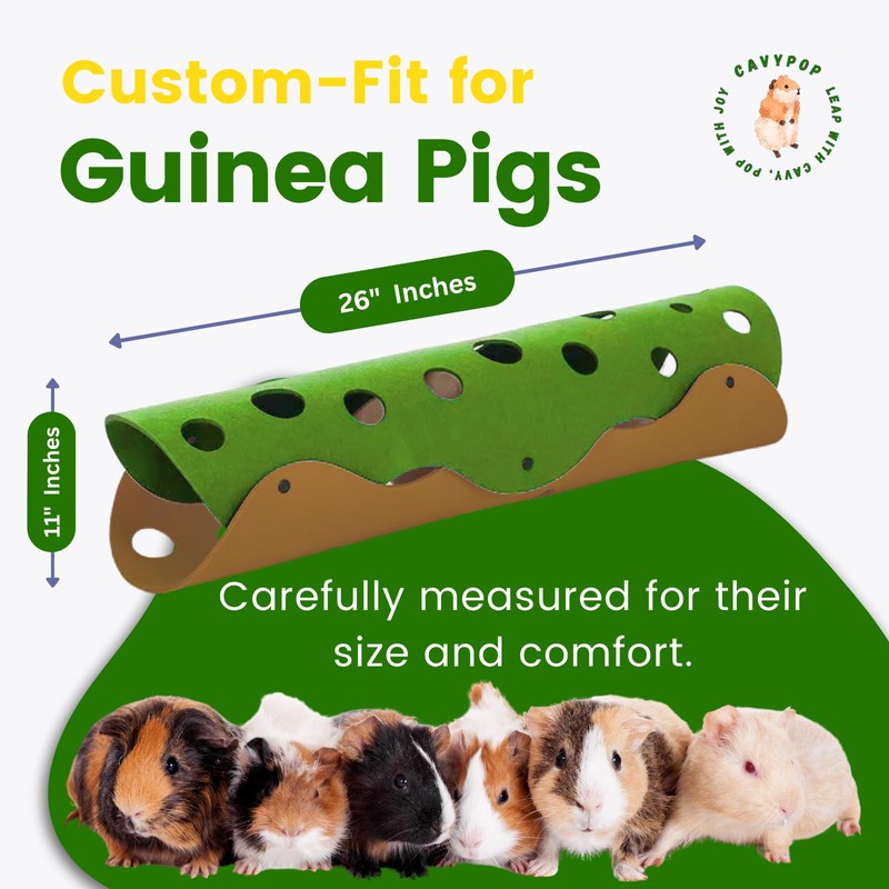 • 🐹 IDEAL SIZE FOR GUINEA PIGS: Measuring 26 × 11 × 8 inches, this tunnel is perfectly sized for guinea pigs to run, rest, and hide. With a body shape similar to rabbits, it also comfortably fits dwarf rabbits if needed.
