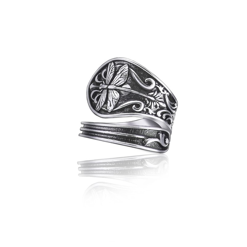 Cawsug Spoon Rings for Women Vintage Silver Boho Statement Dragonfly Adjustable Spoon Ring Thumb Jewelry (silver-1, 7)