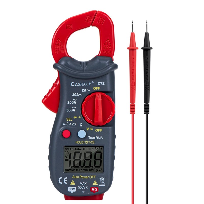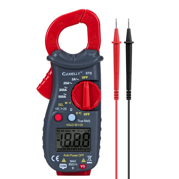 CAXIELLY Digital Clamp Meter Multimeter Amp Voltage Tester Auto-ranging with AC/DC Voltage, AC Current, Resistance, Capacitance, Continuity, Temperature, True RMS Backlight Electrican Tools