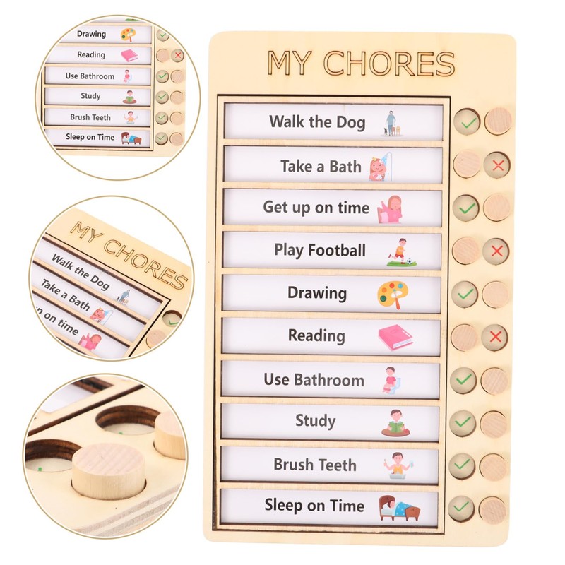 -Displays your daily schedule, plans, etc. Encouraging your to work independently, follow a schedule, plan ahead, keep order, etc., will be a great help chores board.