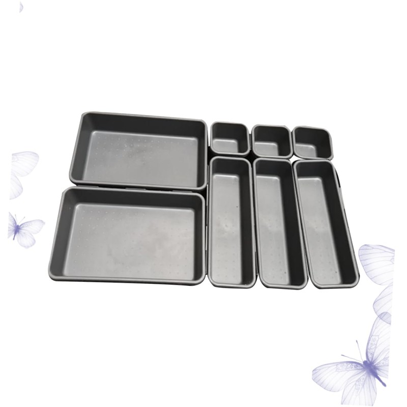 CAXUSD 8pc Multifunctional Storage Container Plastic Drawer Boxes Lids Compartment Organizers Desk Organizers Light Grey