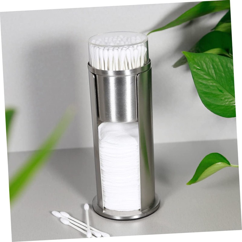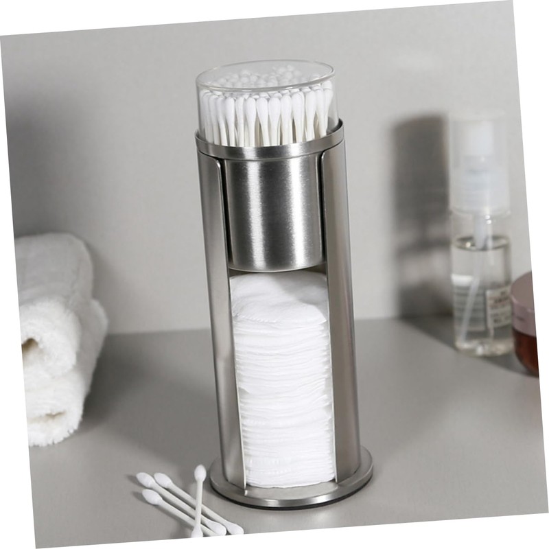 - Round cotton swab box metal cotton swab holder cotton swab container cotton swab organizer cotton swab dispenser clear holder cotton-- cotton ball and swab holder stainless steel cotton swab dispenser storage box container organizer with lid for make up pads cotton rounds bathroom