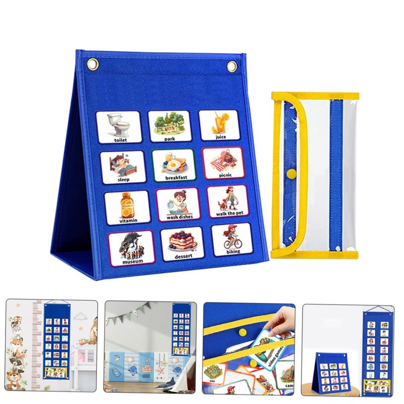 CAXUSD Visual Schedule Chart for Chore Planner with Yellow Pocket for Daily Routines Behavior Management and Independence Skills Development