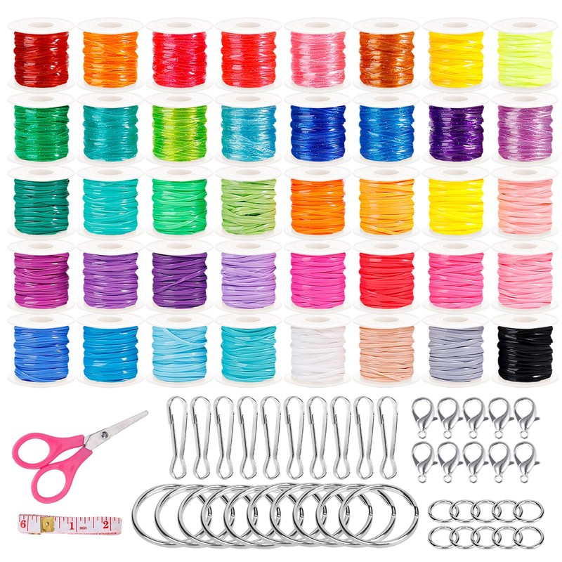 Caydo Lanyard String Kit, 40 Rolls Gimp String, Boondoggle String kit with Scissors, Instruction and Lanyard Making Supplies, Plastic Lanyard String for Friendship Bracelet Making, Key Chain String
