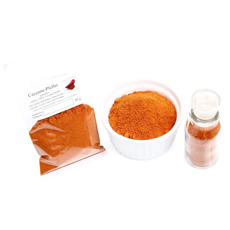 - Sharp pepper ground from the Cayenne chili variety for exceptional dishes. The natural active ingredient capsaicin stimulates blood circulation. Great aromas for hearty dishes and to refine chili ketchup with a very special fire note.
