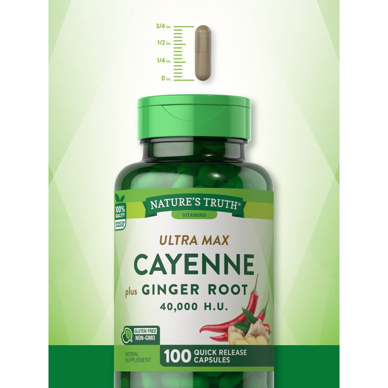 Nature's Truth Cayenne Pepper Capsules | 40,000 HU | 100 Count | with Ginger Root | Non-GMO & Gluten Free Supplement