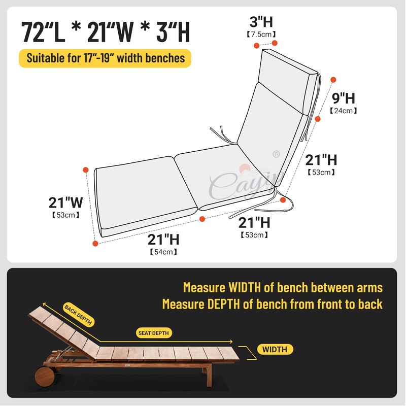 - Measurement:Cushion size: 72"x 21"x 3", with an extended design that makes the body more comfortable. The cushion has straps to make it more secure.