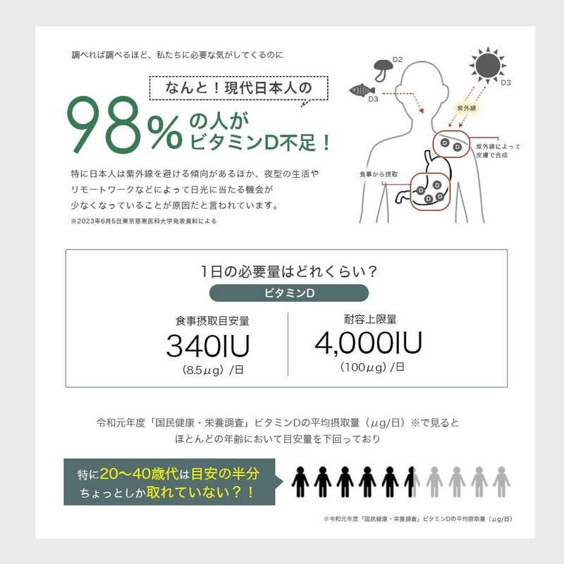 - [A step ahead, C + D + K] Not just liposomal vitamin C! With D3 and K2, it's a luxurious combination that will fully satisfy your ideal! (Vitamin C: 1,000mg Vitamin D3: 2,000IU Vitamin K: 50μg per 3 tablets) With K2, you can eliminate worries about excess D!