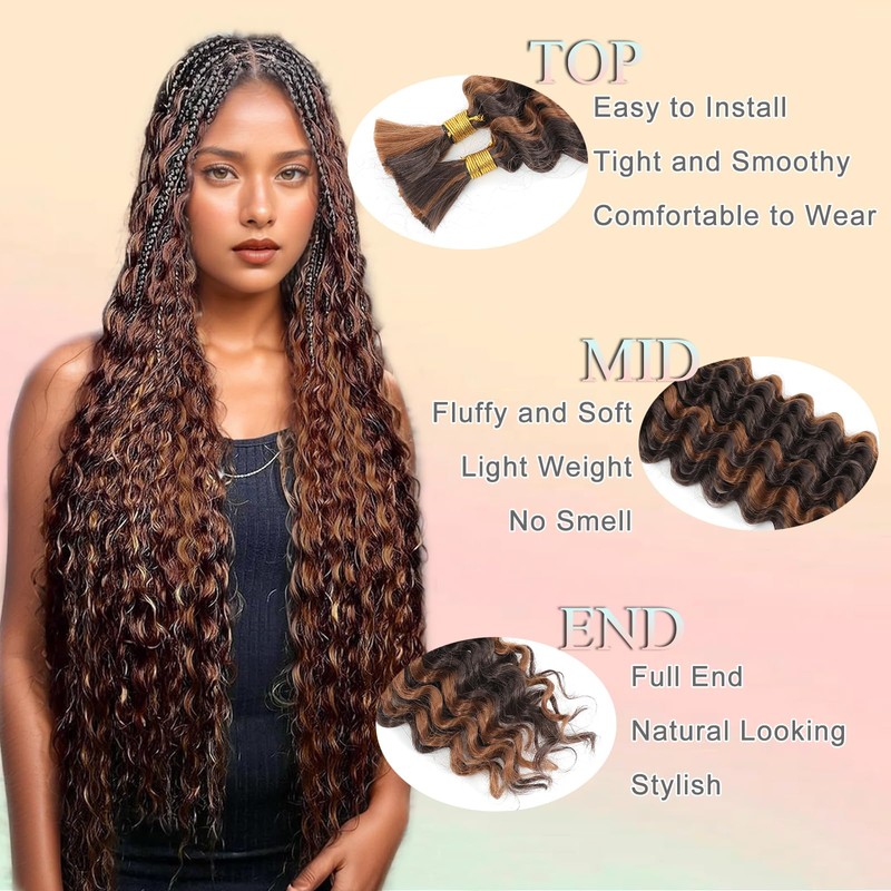 CAZSYSDD Deep Wave Bulk Hair for Braiding 22 inch No Weft Deep Wave Bundles Curly Braiding Hair Extensions for Boho Braids and Wavy Braiding 2 Braids Per Pack (P4/30#, 22inch (1pack))