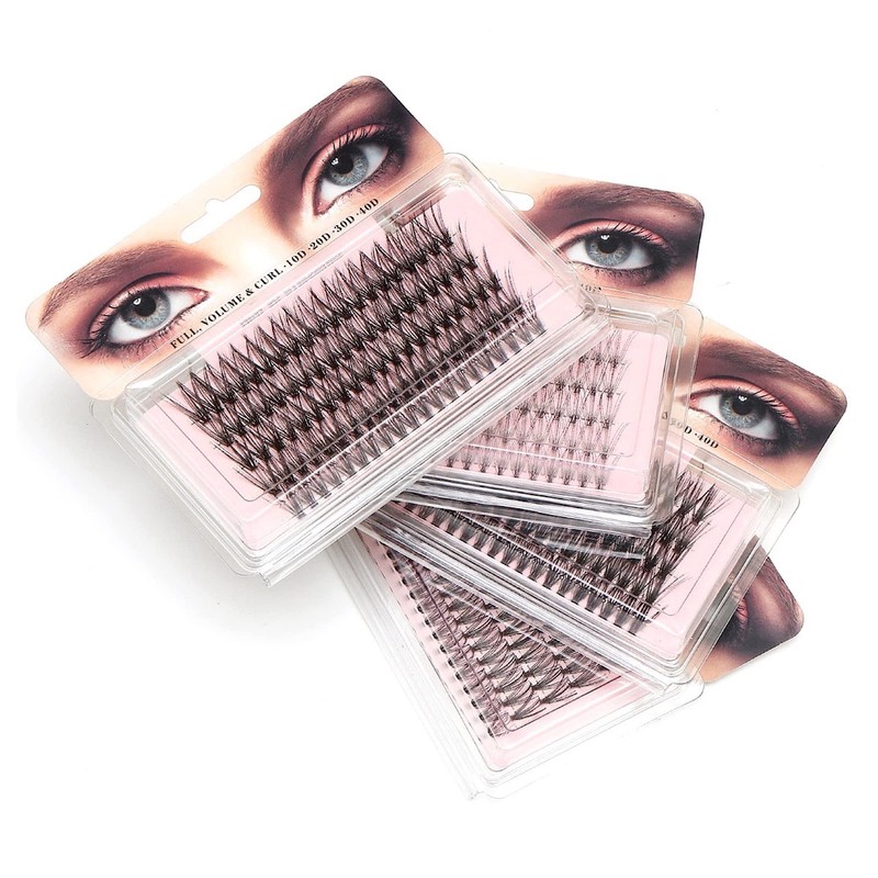 - Style: Natural Look Cluster Eyelashes. Color: Matte Black. Thickness: 0.07mm, Curl: D, Length: Choose From 10mm To 16mm, 20P, 30P, 40P.