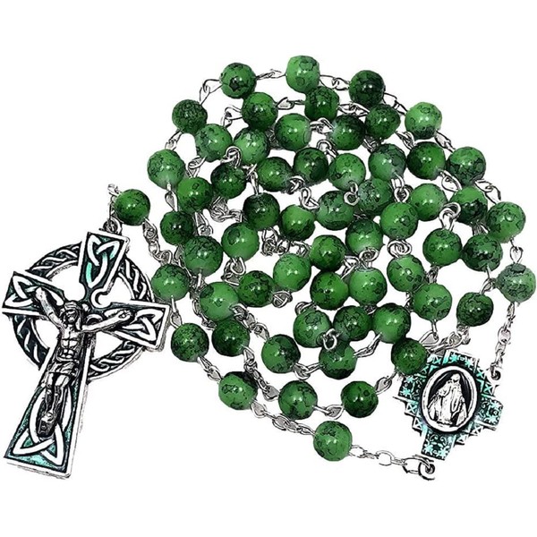 • Classic Irish Celtic Rosary with 7mm Green Glass Marble Beads