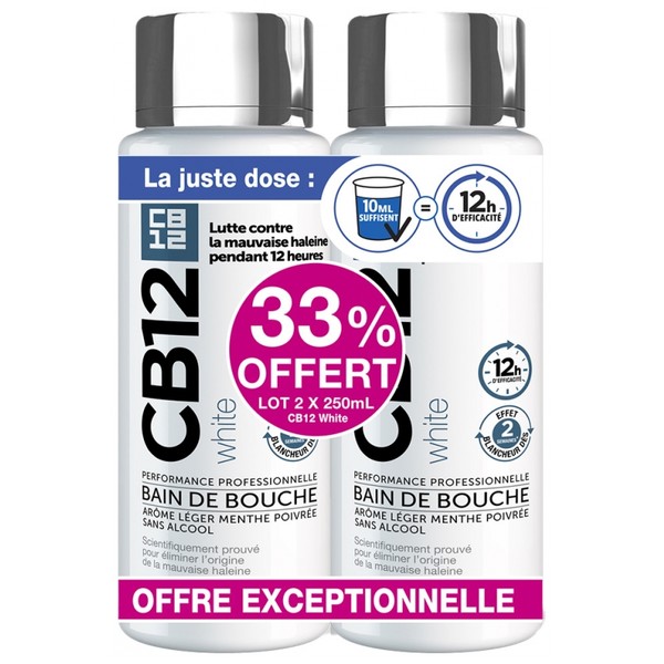 CB12 White Mouth Wash 2 x 250ml is a mouthwash with a light mint taste that protects against bad breath.
