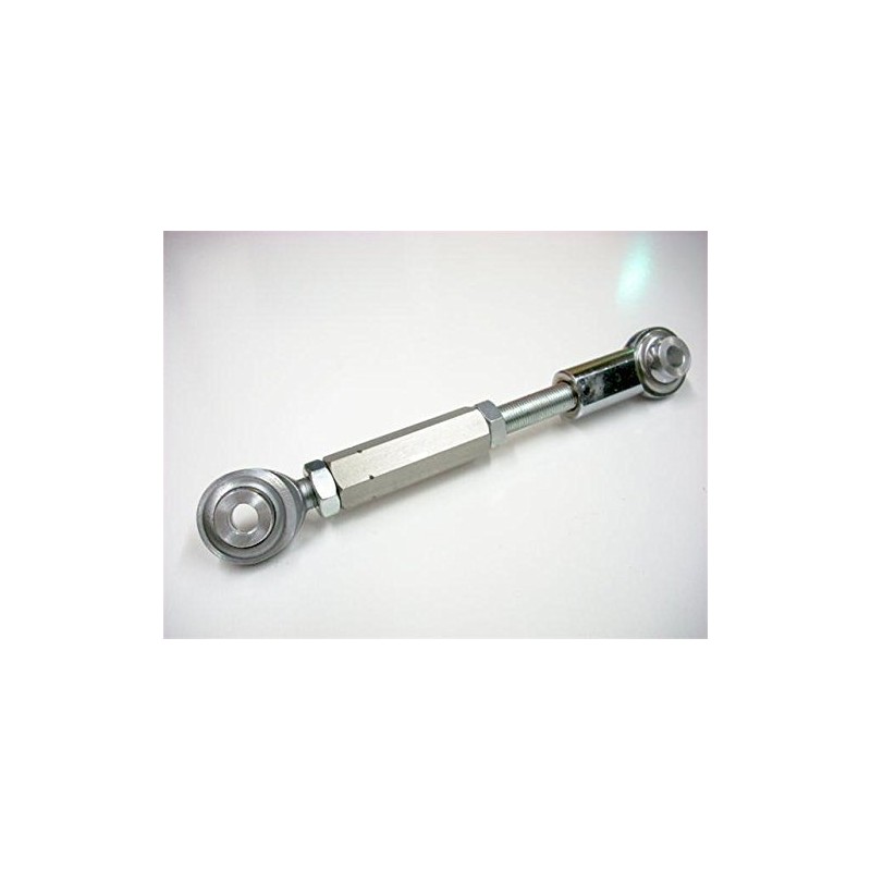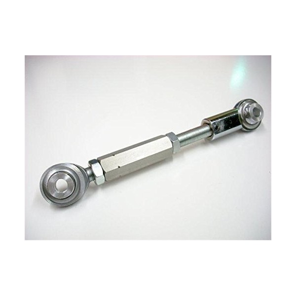 This fully adjustable lowering link can transform the rear of the motorcycle to any height between factory and lowered 4 inches (100 mm). This is perfect for anyone who needs just a little more of their feet touching the ground at intersections and on slopes, or for that "lowered stance" look. To change ride height, simply turn the center hex adjuster. Made of steel, it uses large, ½ inch diameter threads and silver zinc coating for strength and corrosion resistance. The ball bearings are hardened steel with a Teflon race. We do not use aluminum threads.