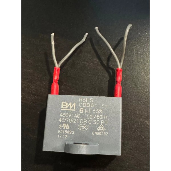 - BM CAPACITOR CBB61 6uf +/- 5%, 450V. AC 50/60Hz 40/70/21 DB C S0 P0