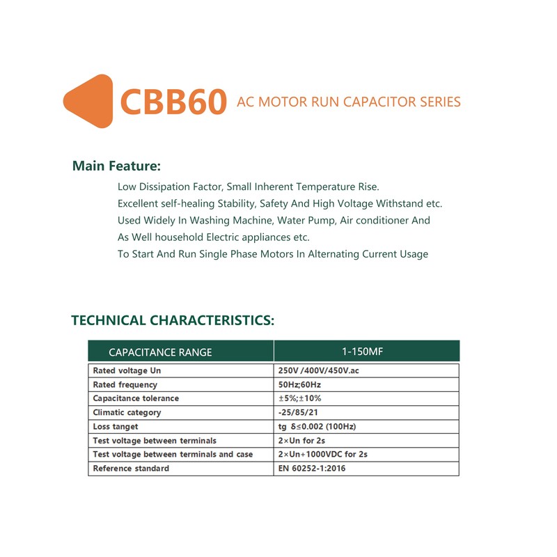 - High-Quality Construction: Our CBB60 capacitor is built to the highest standards, ensuring durability and reliability for long-term use.