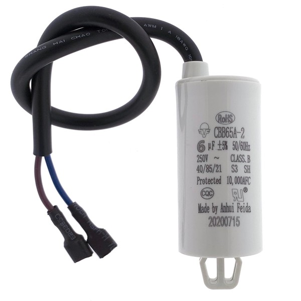 CBB65A-2 6uF 250VAC 50/60Hz Compressor Run & Start Capacitor 40/85/21 with RoHS UL (Snap Lock)