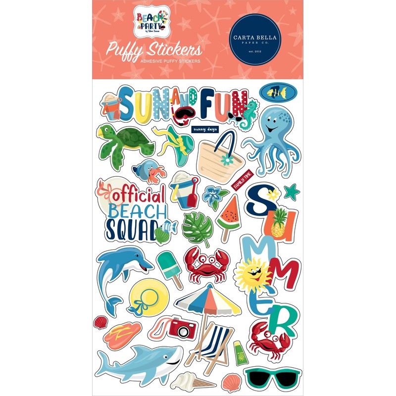 CBBE149066 Beach Party Puffy Stickers, White