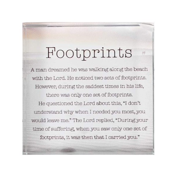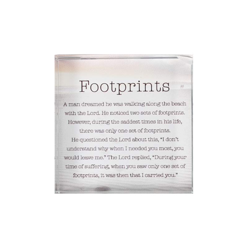 - cbc Footprints in the sand glass block paperweight plaque