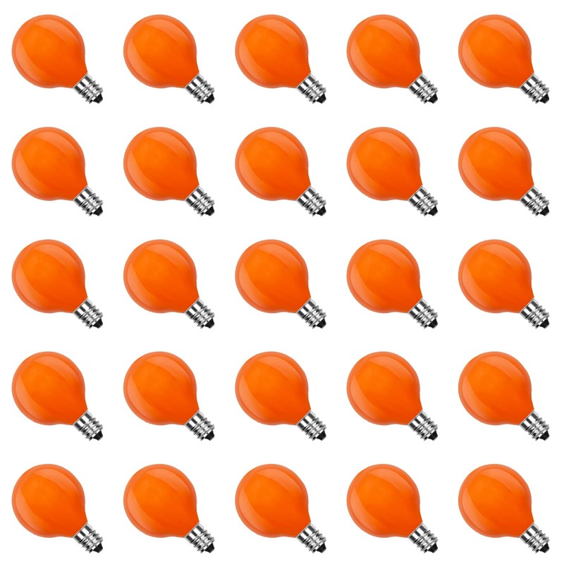 - Orange G40 Globe Light Bulbs: Set includes 25pcs G40 orange light bulbs, bright orange colour adds festive atmosphere, create a warm and pleasant atmosphere for your Halloween and Christmas decorations. Perfect for Halloween pumpkin lights, chandeliers, wall sconces, Christmas light strings and other decorative light fixtures