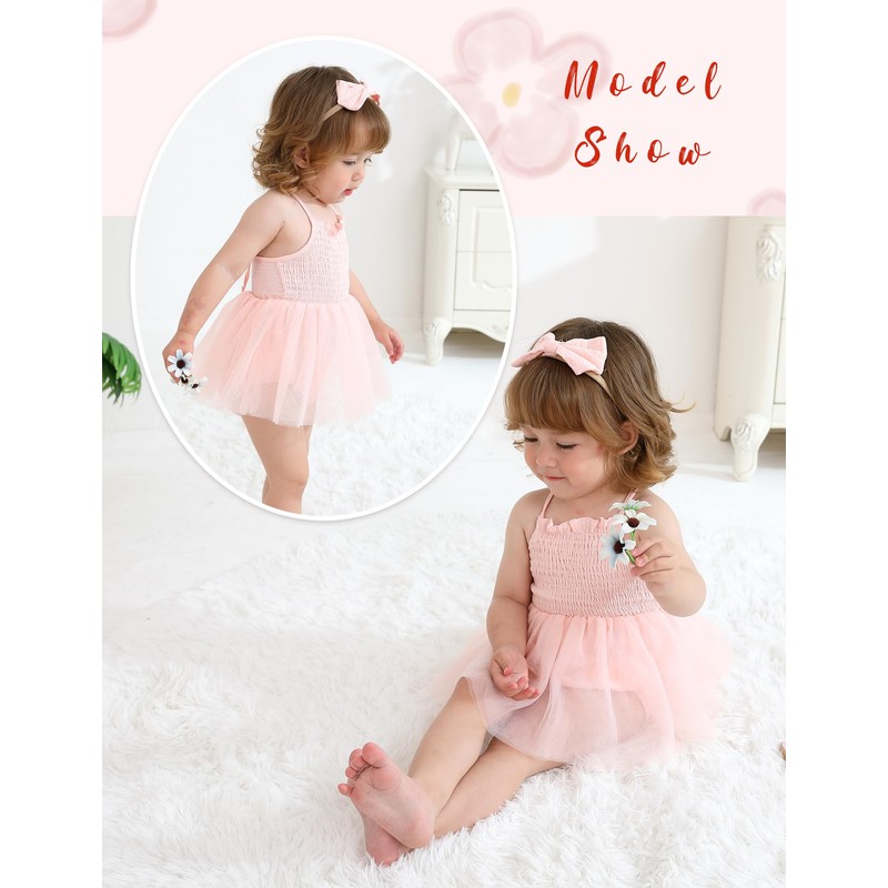 - Feature: solid adjustable strap cotton romper dress for infant baby girl,the sheer tulle part adds a dreamy, floaty touch,halter backless design make it more comfortable for summer days.