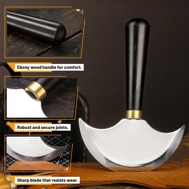 - Comfortable Handling: The ergonomic ebony wood handle of the round leather knife fits snugly in your hand, offering excellent control during use, ensuring both comfort and efficiency. This design ensures that you can work for extended periods without experiencing discomfort or fatigue